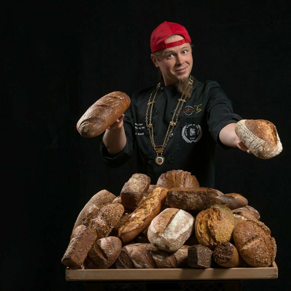 Axel Schmitt, ein Bäckermeister und Brotsommelier, ist bekannt für seine Leidenschaft und sein handwerkliches Können in der Backkunst, wobei er besonderen Wert auf Detailgenauigkeit und die richtige Zusammensetzung legt, die er als pure Musik beschreibt. Im Jahr 2022 wurde er vom Vorstand der International Union of Bakers and Confectioners in Reykjavik zum Weltbäcker des Jahres gekürt, eine Anerkennung, die er als Ansporn sieht, weiterhin für den Beruf des Bäckers zu werben. Neben seinen Fähigkeiten in der Bäckerei ist Schmitt auch aus seinen TV-Auftritten, als Musiker und als offizieller Bäcker des Wacken Open Air Festivals bekannt. Er arbeitet täglich in der Backstube seines über 100 Jahre alten Familienbetriebs in Frankenwinheim und ist ebenfalls als Ausbilder tätig.